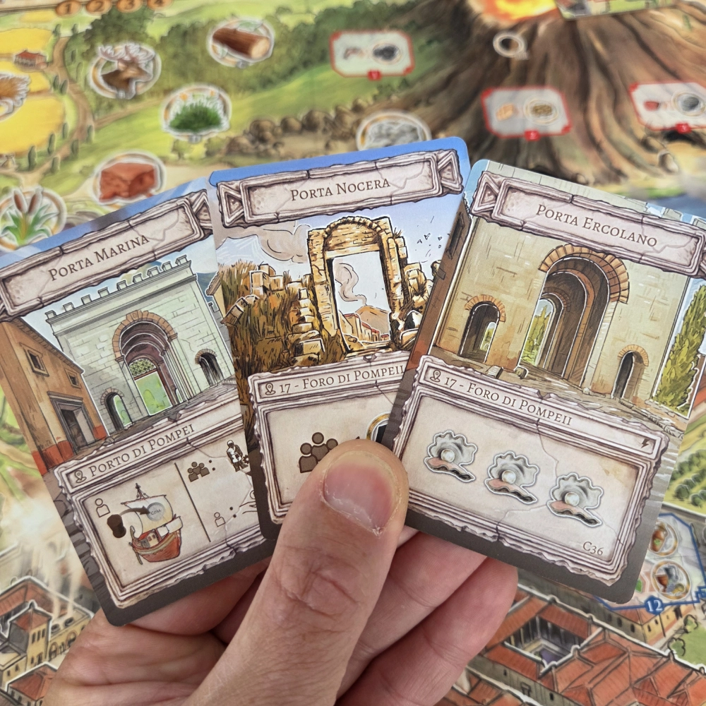 Pompeii is a develoment game with a twist. A light-to-medium strategy game: easy to learn, full of meaningful choices. Each round, your workers can perform 1 of the following standard worker actions: